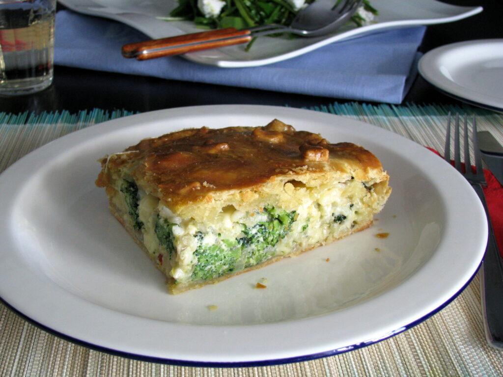 Σκεπαστή τάρτα με μπρόκολο ρύζι και τυρί.