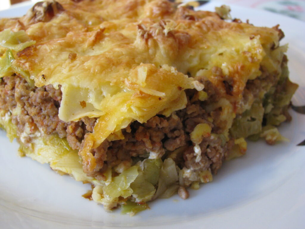 “Μουσακάς” με πράσα και χυλοπίτες