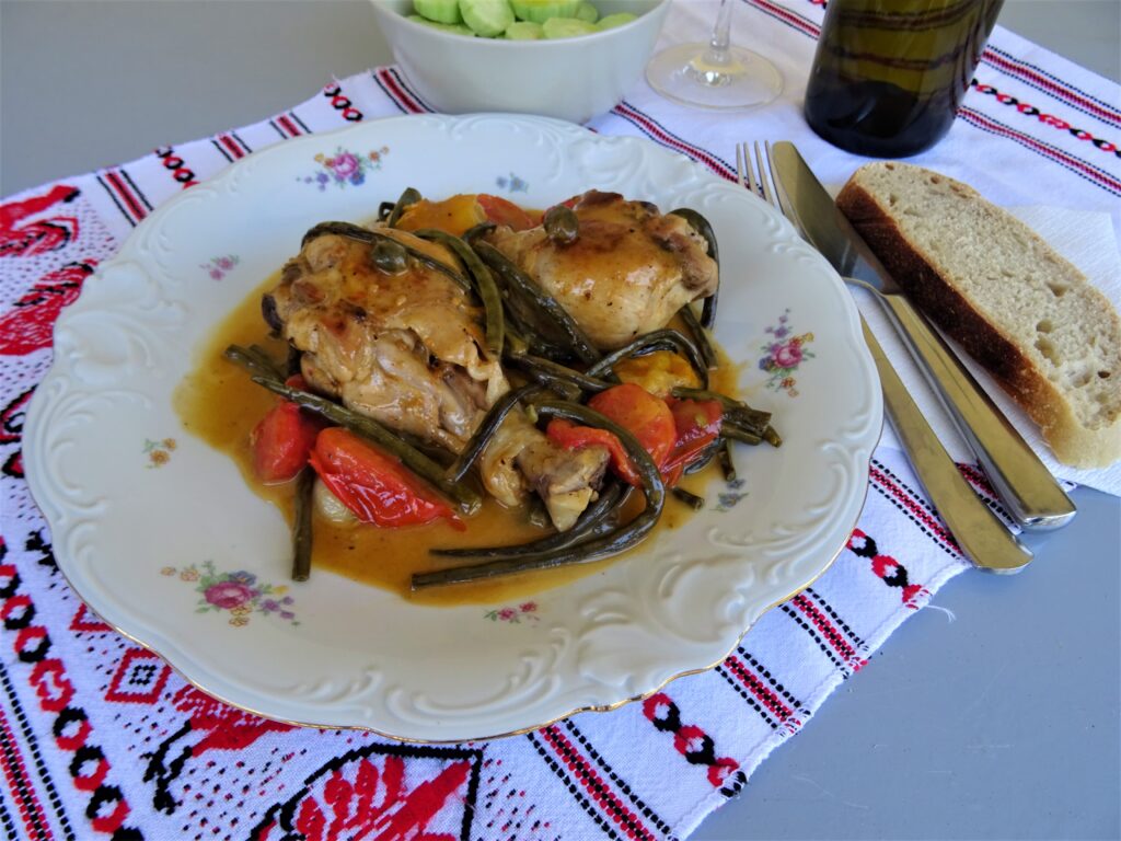Κοτόπουλο με ντοματίνια και αμπελοφάσουλα