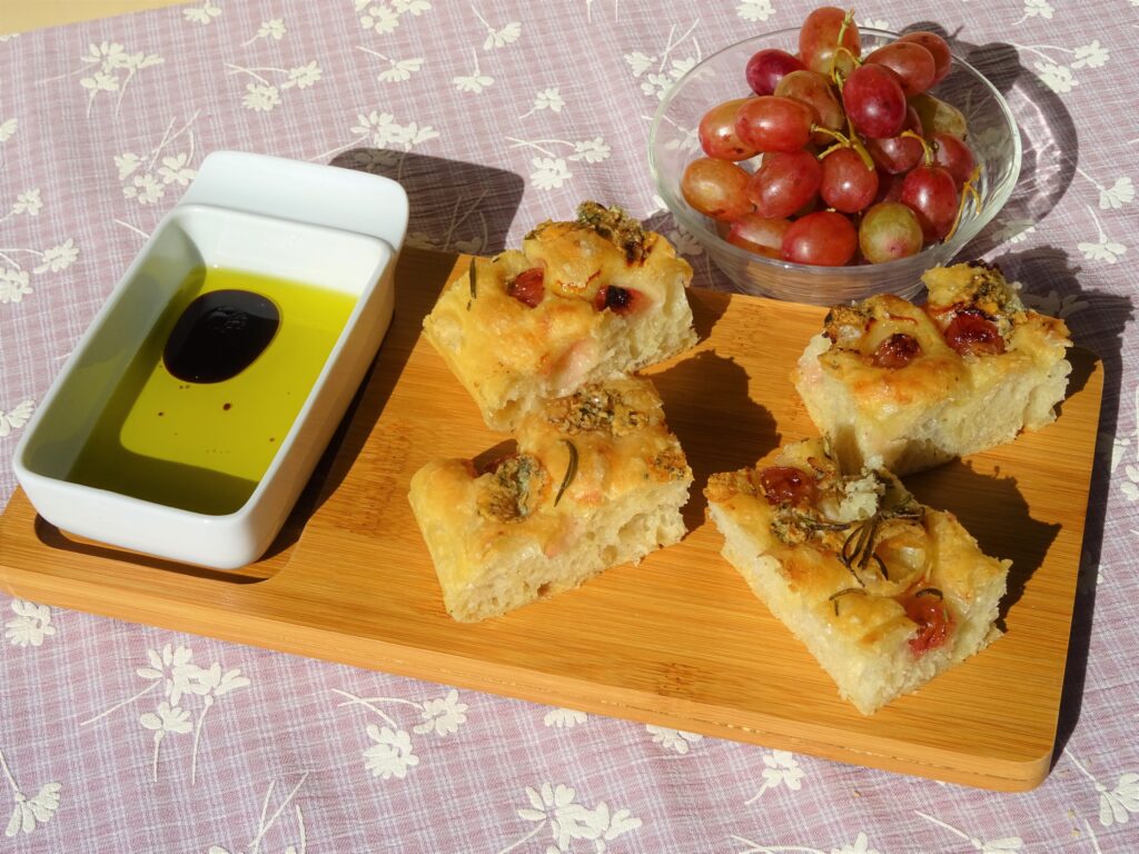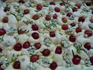 Φοκάτσια ή φοκάτσα με μπλε τυρί και σταφύλια