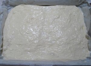 - Το επόμενο πρωί με λαδωμένα χέρια ξεφουσκώνουμε τη ζύμη και την μεταφέρουμε σε επιφάνεια εργασίας, διπλώνοντας τη μερικές φορές.