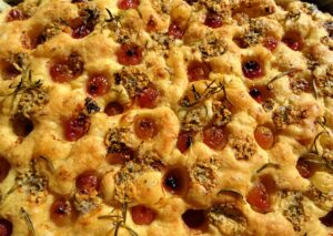 Είναι ένα αφράτο ψωμί στην ουσία, που στην επιφάνεια του έχουμε προσθέσει κάποια υλικά επιπλέον.