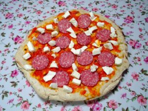 - Ξεπαγώνουμε τη ζύμη- βάση για την πίτσα Ετοιμάζουμε όλα τα υπόλοιπα υλικά.