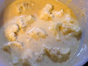 - Πλένουμε το κουνουπίδι και το κόβουμε σε μπουκετάκια μικρά. Αφήνουμε σε σουρωτήρι να στραγγίσει.